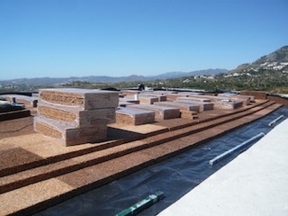 Die Dachflächen wurden mit 18cm Korkplatten, die Balkonflächen mit 10cm Korkplatten gedämmt.