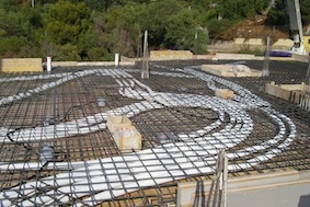 Die Lüftungsrohre wurden dazu in der Betondecke mit vergossen. So führt von den beiden zentral montierten Verteilerkästen im EG und im Keller jeweils ein individuelles Rohr zu jedem einzelnem Abluft- bzw. Zuluftstutzen im Haus.