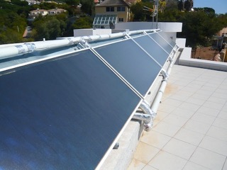 Gespeist wird der Tank in erster Linie durch eine Solarthermieanlage mit 5 aufgeständerten Solarpanelen auf dem Flachdach.