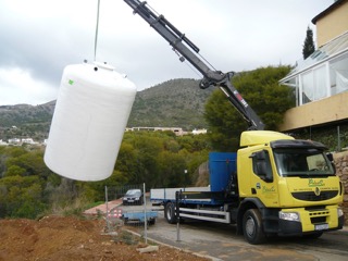 Der RegenwassertankAuf dem Flachdach verfügt das Haus über rund 190m2 Dachfläche zur Nutzung des anfallenden Regenwassers. Dazu kommen ca. 110m2 Fläche von der Süd- und Ostterrasse, die ebenfalls ans Regenwassersystem angeschlossen sind. In dieser Region fällt der Regen vorwiegend im Winterhalbjahr, während in den Sommermonaten kaum ein Tropfen fällt. Daher wurde ein relativ großes Volumen gewählt für den Regenwassertank, der im Garten im Erdreich eingegraben wurde. 16m3 umfasst sein Volumen. So kann ein Großteil der Gartenbewässerung im Winter und in den Übergangszeiten sowie die Toilettenspülung des Hauses mit Regenwasser gespeist werden. Der Wassertank spart uns ca. 80m3 im Jahr.
